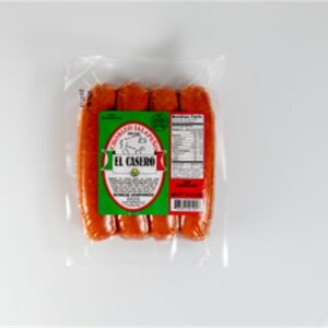Ingredients: Pork, Salt, Sodium Tripolyphospahte, Sodium Erythorbate, Spices, Sodium Nitrate, Sodium Nitrite,Dehydrated Garlic, US Certified Red Color #40, Canola Oil, Spice Extractives. In natural hog casing.